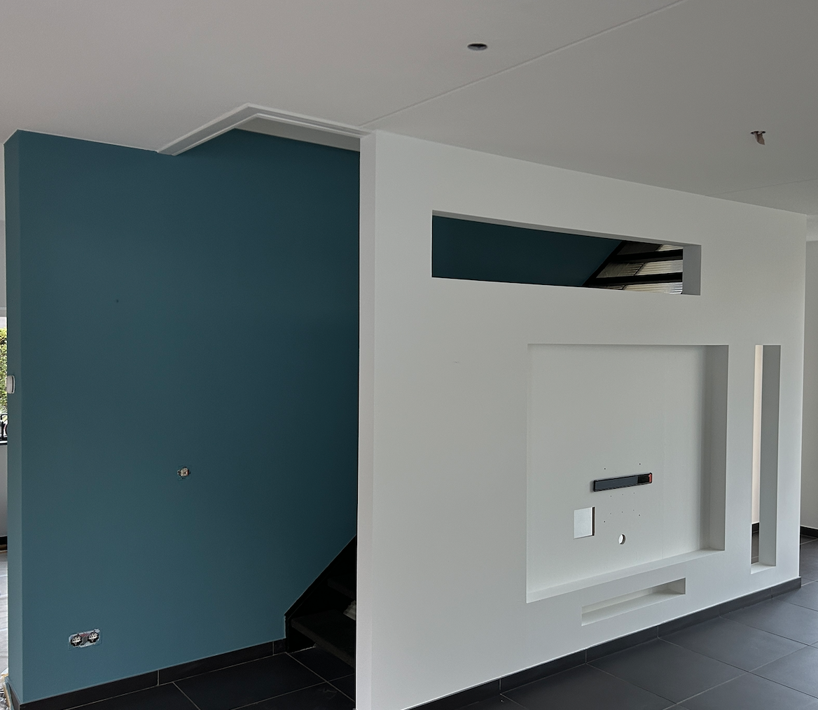 De basis wit tint die wij het meeste toepassen op plafonds en wanden zijn gewoon wit/wit en ral 9016. Deze wit tinten vormen de basis. U ontvangt altijd vooraf een kleurenstaal van ons en uiteraard kunnen er altijd wanden op kleur worden gespoten. Ral 9016 doet het tegenwoordig erg goed in zowel nieuwbouw als in de bestaande bouw. Deze wit tint heeft een hele lichte grijzige uitstraling door de toevoeging van zwarte pigment druppels en wat chromaat gele pigment. Ral 9016 wordt daarom veel toegepast en matched mooi met antraciete elementen en grijze accenten in de interieurs van nu.